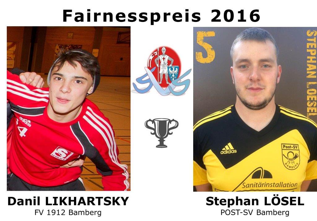 Den diesjährigen Fairness-Preis erhielten der 13-jährige Ukrainer Danil Likhartsky, der in einer Notsituation mit seinen Lieblings-Torwarthandschuhen aushalf, und Stephan Lösel (Post SV Bamberg) aus den Händen des vielfachen Bob-Weltmeisters und Goldmedaillen-Gewinners Kevin Kuske.